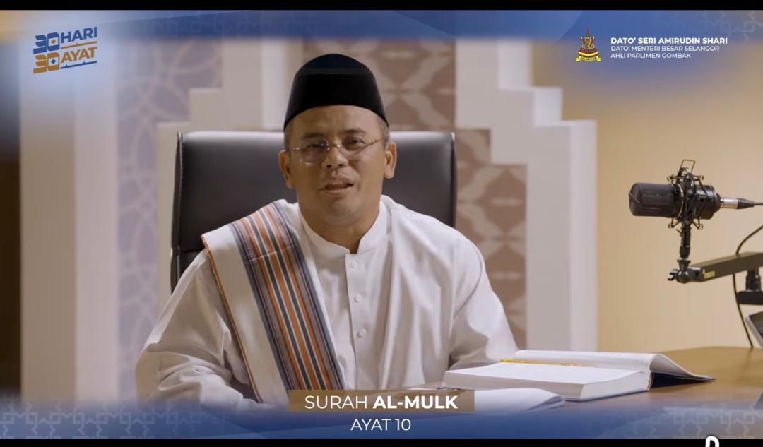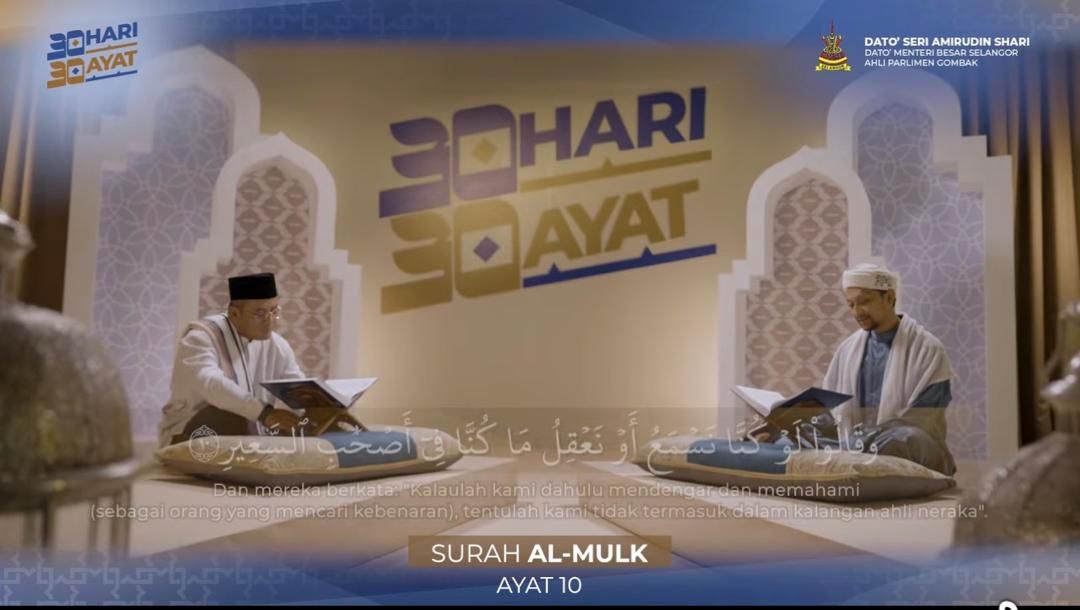 Terdahulu, ayat ke-10 Surah al-Mulk dibacakan Dato’ Seri Amirudin Shari dengan bimbingan Pensyarah Pusat Kajian al-Quran dan al-Sunnah, Fakulti Pengajian Islam, Universiti Kebangsaan Malaysia (UKM) Dr Ahmad Fakhrurrazi Mohammed Zabidi.