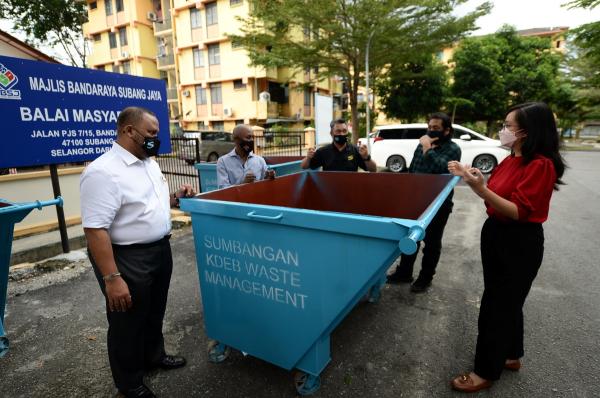 SUBANG JAYA, 16 SEPT: Kumpulan Darul Ehsan Berhad Waste Management (KDEBWM) menyumbang enam tong sampah jenis 'leach bin' kepada Pangsapuri PJS 7/15, Bandar Sunway semalam.