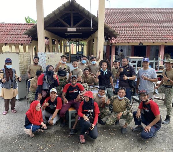Ahli Dewan Negeri Meru Mohd Fakhrulrazi Mokhtar mengedarkan sumbangan pakaian kepada mangsa banjir di pusat pemindahan sementara Sekolah Menengah Kebangsaan Meru, Klang pada 23 Disember 2021. Foto Facebook Pusat Khidmat Rakyat N42 Meru Klang - YB Fakhrulrazi Mokhtar[/caption]