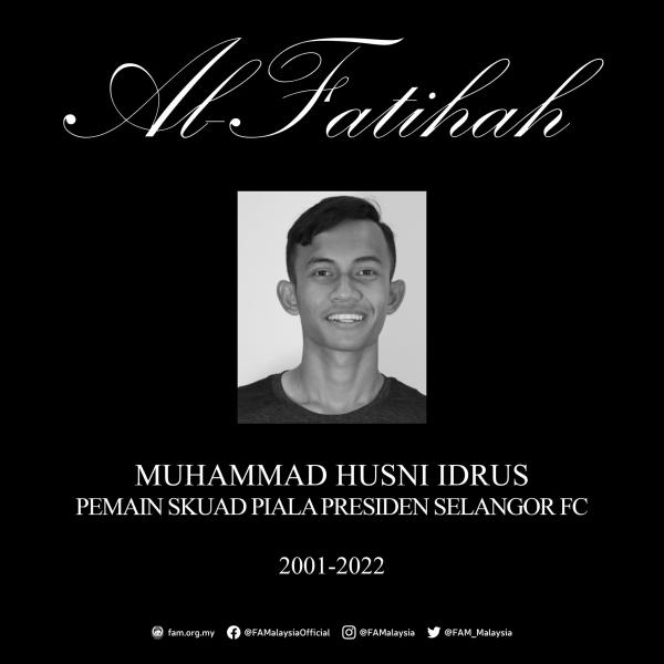 Sementara itu, Persatuan Bolasepak Malaysia (FAM) dalam hantaran Facebook hari ini menzahirkan ucapan takziah kepada keluarga Muhammad Husni dan mendoakan semoga Allah SWT merahmati dan mengampuni segala dosa Allahyarham.