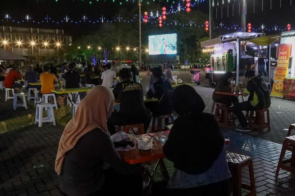 Orang ramai menikmati juadah di tapak kendera saji sambil menyaksikan saingan terakhir kumpulan B Piala Persekutuan Bolasepak Asean (AFF) 2022 antara Malaysia dan Singapura melalui tayangan skrin besar di Laman Majlis Bandaraya Petaling Jaya (MBPJ) Seksyen 52, Petaling Jaya pada 3 Januari 2023. Foto REMY ARIFIN/SELANGORKINI[/caption]