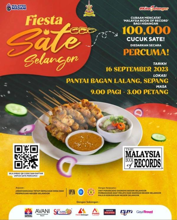 SHAH ALAM, 4 SEPT: Fiesta Sate Selangor yang menghidangkan lebih 100,000 cucuk sate bakal diadakan di Pantai Bagan Lalang, Sepang pada 16 September ini.
