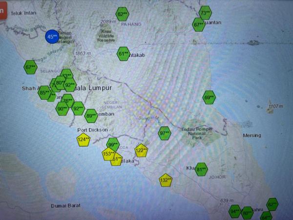 Sementara itu Shah Alam merekodkan bacaan 79, Petaling Jaya (80), Johan Setia (77) dan Klang (85).