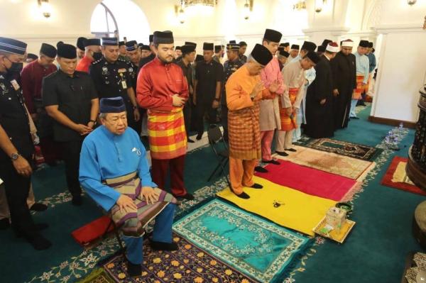 Selesai solat yang diimamkan Imam Masjid Sultan Salahuddin Abdul Aziz Shah Sheikh Abdul Karim Omar, Al-Sultan Abdullah meluangkan masa bersalaman dengan jemaah.