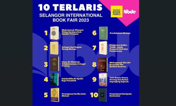 SHAH ALAM, 17 DIS: Naskhah riwayat Rasulullah mengungguli carta 10 buku terjemahan Inisiatif Buku Darul Ehsan (IBDE) terlaris pada Pesta Buku Antarabangsa Selangor (SIBF) 2023 yang berlangsung dari 1 hingga 10 Disember.
