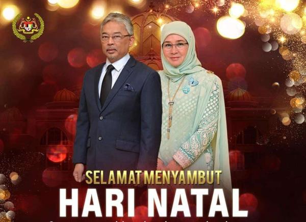 KUALA LUMPUR, 24 DIS: Yang di-Pertuan Agong Al-Sultan Abdullah Ri'ayatuddin Al-Mustafa Billah Shah dan Raja Permaisuri Agong Tunku Azizah Aminah Maimunah Iskandariah menzahirkan ucapan Selamat Menyambut Hari Natal kepada masyarakat yang beragama Kristian di Malaysia.