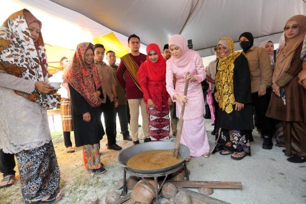 Lawatan Tengku Permaisuri Hajah Norashikin bermula di majlis kenduri rakyat dekat Rumah Gubuk Antik, Sungai Air Tawar itu disambut Yang Dipertua Pekawanis Datin Seri Masdiana Muhamad.