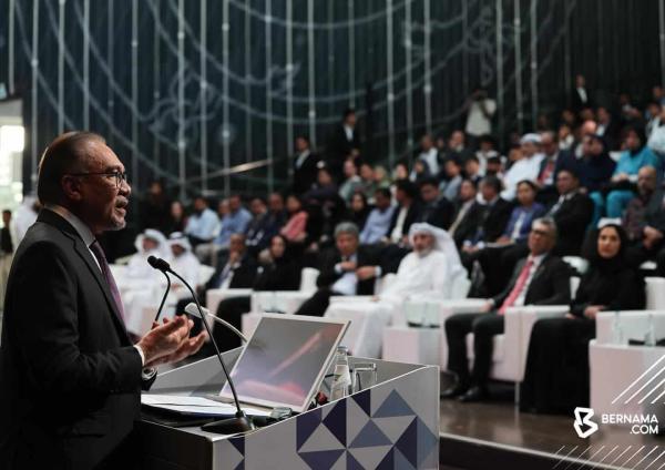 Anwar meluangkan masa kira-kira sejam dalam sesi interaktif berbincang dan memaklumkan perkembangan terkini mengenai ekonomi Malaysia, ekosistem perniagaan serta Pelan Induk Perindustrian Baharu 2030 kepada ahli perniagaan Qatar