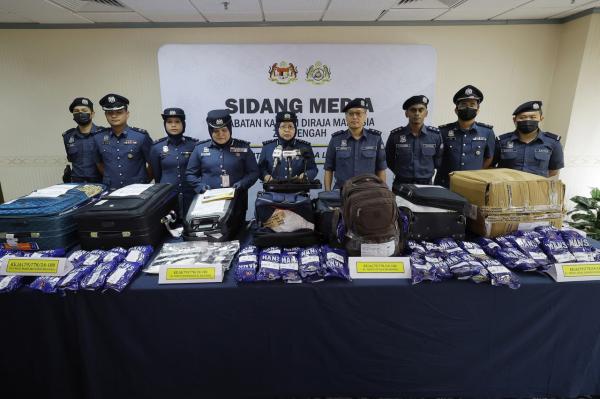 SEPANG, 13 JUN: Jabatan Kastam Diraja Malaysia (JKDM) Unit III (LTAKL) Zon Tengah menggagalkan cubaan menyeludup masuk tembakau kunyah kira-kira 5,000 kilogram (kg) melibatkan nilai duti lebih RM409,000 dalam tiga kes, antara Mei hingga awal Jun ini.