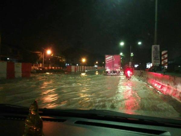 Sehingga jam 9.30 pagi ini, laluan berkenaan masih dipenuhi air dan kebanyakan pengguna terpasa meredah laluan berair.
