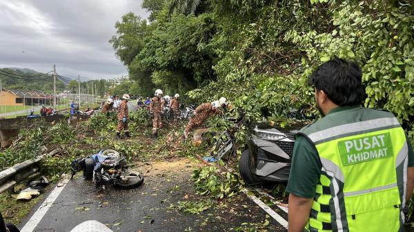Dua beranak parah selepas pokok tumbang hempap kereta, motor