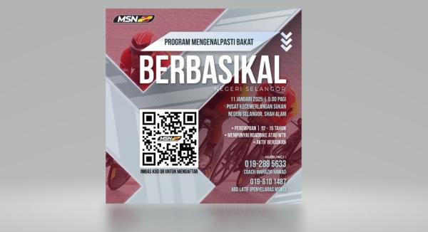 SHAH ALAM, 1 JAN: Majlis Sukan Negeri (MSN) Selangor menganjur program pencarian bakat berbasikal baharu pada 11 Januari di Pusat Kecemerlangan Sukan Negeri Selangor, di sini.