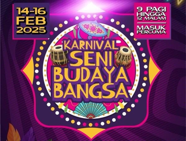 SHAH ALAM, 11 FEB: Orang ramai dijemput hadir bagi memeriahkan Karnival Seni Budaya Bangsa di Dataran Kemerdekaan Shah Alam pada 14 hingga 16 Februari.