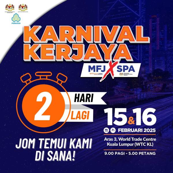 Pertubuhan Keselamatan Sosial (Perkeso) dalam kenyataan hari ini memaklumkan karnival anjuran bersama Suruhanjaya Perkhidmatan Awam (SPA) berkenaan menawarkan sesi temu duga terbuka jawatan Pengajar Gred U9 (Teknologi Pergigian), dengan calon berjaya dilantik bersandarkan kelulusan kekosongan jawatan di Kementerian Kesihatan seluruh negara.