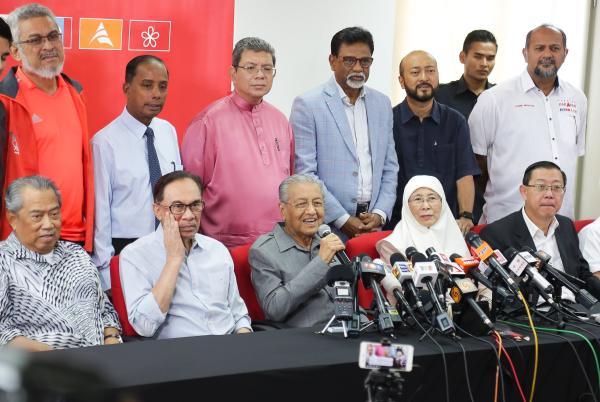 PETALING JAYA, 1 JUN: Ketua Umum Pakatan Harapan (PAKATAN), Datuk Seri Anwar Ibrahim muncul buat pertama kali bersama Perdana Menteri, Tun Dr Mahathir Mohamad pada sidang media Majlis Presiden, gabungan itu di Menara Yayasan Selangor, tengah hari ini.