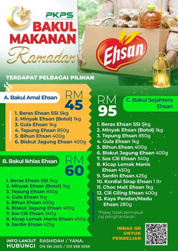 SHAH ALAM, 5 MAC : Orang ramai yang ingin berinfak boleh membeli bakul makanan jenama Ehsan keluaran Perbadanan Kemajuan Pertanian Selangor (PKPS) sempena Ramadan tahun ini.