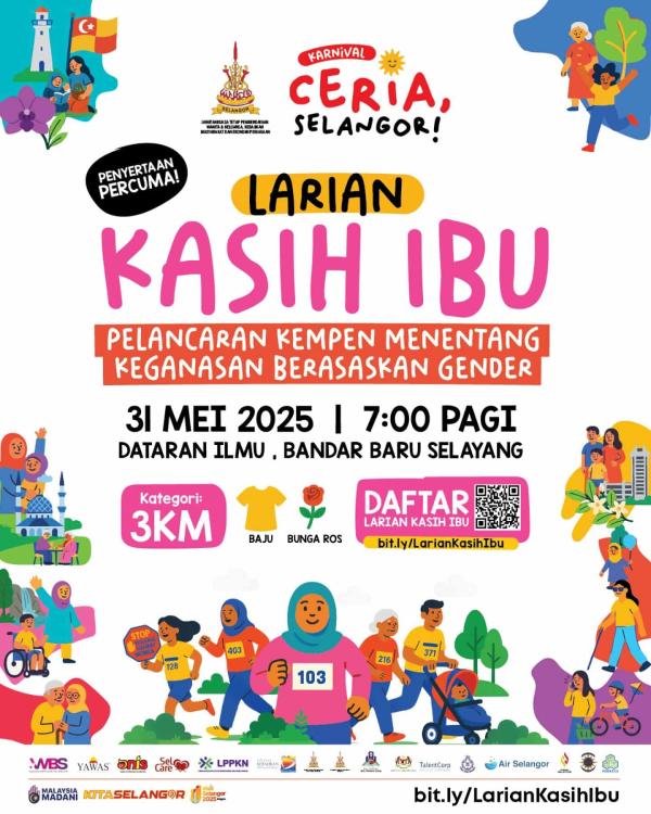 Kuntuman ros, t-shirt percuma menanti peserta Larian Kasih Ibu 31 Mei ini