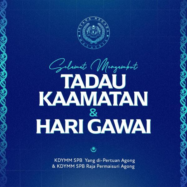 Yang di-Pertuan Agong dan Raja Permaisuri Agong Raja Zarith Sofiah juga berkenan menzahirkan ucapan selamat menyambut Pesta Kaamatan dan Hari Gawai kepada rakyat Malaysia yang meraikannya.