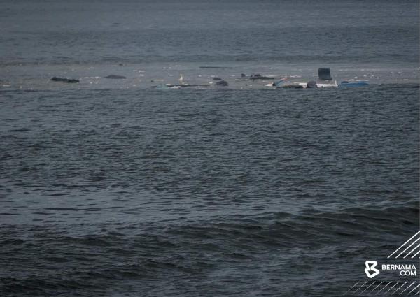 Serpihan helikopter PDRM yang terhempas ketika melakukan simulasi lintas hormat sempena program Latih Amal Pelbagai Hala Pengesanan Sekuriti Nuklear, Malaysia-Indonesia-Thailand-Singapura 2025 (MITSATOM 2025) berhampiran Sungai Pulai, Gelang Patah pada 10 Julai 2025. Foto BERNAMA[/caption]