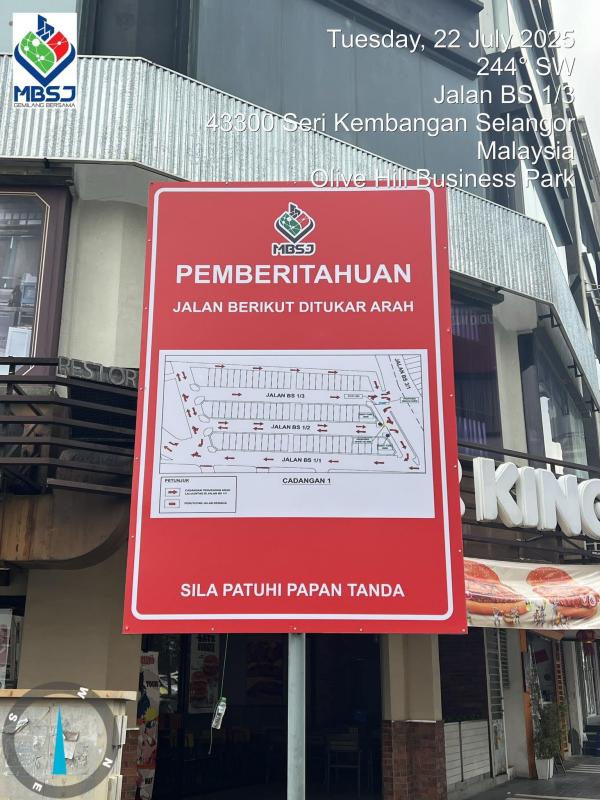 Tambah beliau, laluan dari Jalan BS 3/1 ke dalam kawasan Olive Hill juga ditukar kepada laluan sehala, dan pemandu tidak boleh lagi terus masuk ke Jalan BS 1/3. Sebaliknya, mereka perlu membelok ke kiri ke Jalan BS 1/1 atau BS 1/2 untuk ke Jalan BS 1/3.