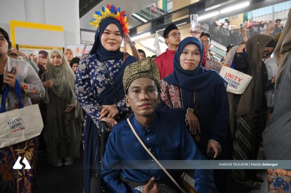 KUALA LUMPUR, 14 SEPT: Seorang lelaki tetap bersemangat menyambut Hari Malaysia walaupun terpaksa berkerusi roda ketika acara Keretapi Sarong 2025, di Raintree Tun Razak Exchange (TRX).