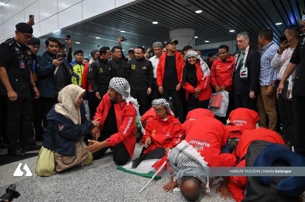 SEPANG, 8 OKT: Kepulangan wira misi Global Sumud Flotilla (GSF) dinanti penuh rasa bangga oleh ahli keluarga, rakan serta ratusan orang awam yang hadir di Lapangan Terbang Antarabangsa Kuala Lumpur (KLIA) malam tadi, sebagai tanda sokongan dan solidariti terhadap perjuangan rakyat Palestin.