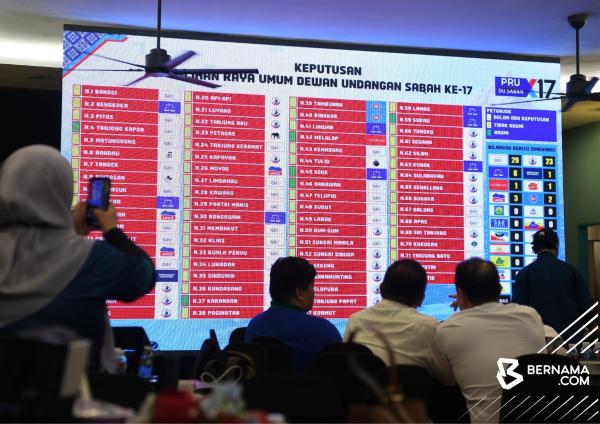 Setakat 11 malam, Suruhanjaya Pilihan Raya telah mengumumkan keputusan rasmi bagi 22 kerusi Dewan Undangan Negeri (DUN) namun difahamkan parti-parti sedang giat mengadakan rundingan di kediaman rasmi Ketua Menteri Sabah di Sri Gaya dan beberapa lokasi lain.