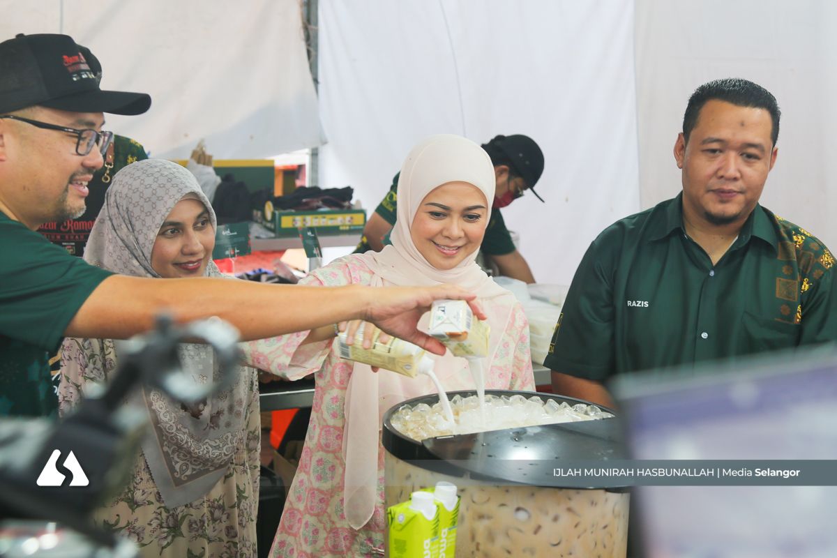 Keberangkatan tiba Baginda disambut Yang Dipertua Pertubuhan Kebajikan dan Amal Wanita Selangor (Pekawanis) Datin Seri Masdiana Mohamad, EXCO Keusahawanan Mohd Najwan Halimi serta Ketua Pegawai Eksekutif Kumpulan Menteri Besar Selangor (Pemerbadanan) atau MBI Dato’ Ts Saipolyazan M Yusop.