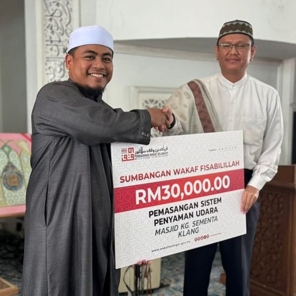 SHAH ALAM, 10 MAC: Masjid Kampung Sementa, Klang menerima sumbangan wakaf fisabilillah berjumlah RM30,000 daripada Perbadanan Wakaf Selangor (PWS) bagi pemasangan sistem penyaman udara di masjid berkenaan.