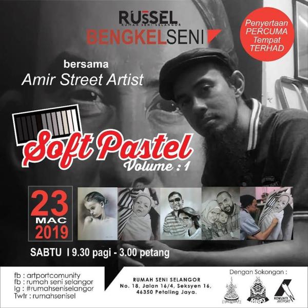 Bengkel seni itu turut menampilkan Amir Street Artist yang juga pelukis pakar dalam teknik 'soft pastel grey tone'.