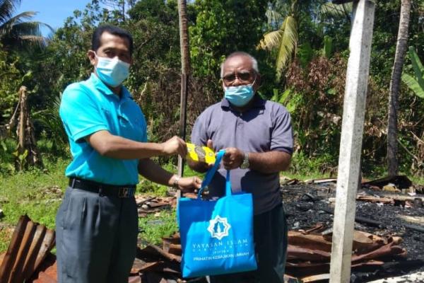 SHAH ALAM, 22 APRIL: Yayasan Islam Darul Ehsan (Yide) menyalur sumbangan wang tunai kepada seorang warga emas yang terlibat dalam kebakaran di Kampung Pasir Baru, Semenyih.