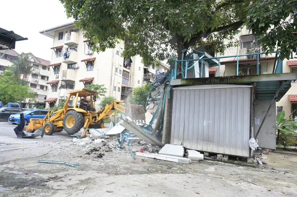 SHAH ALAM, 2 APRIL: Majlis Bandaraya Petaling Jaya (MBPJ) merobohkan sebuah struktur kabin dua tingkat yang dibina tanpa kebenaran di Seksyen 7, Kota Damansara, semalam.