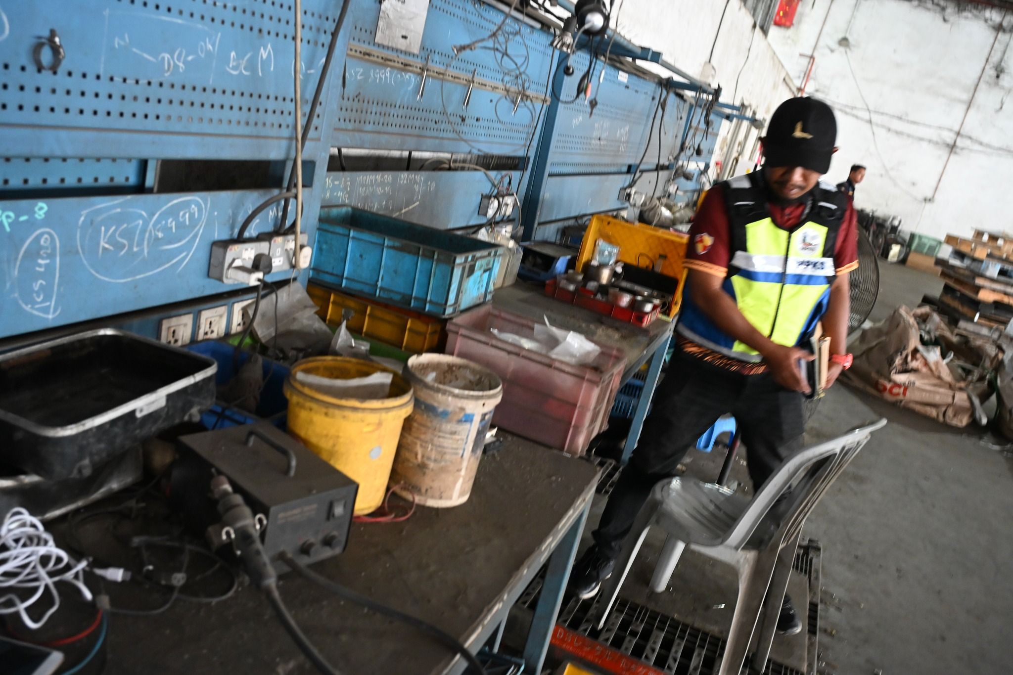 Dalam operasi sama, pihak berkuasa menyita pelbagai peralatan termasuk penimbang, pemampat udara, forklift, kipas ekzos, troli, mesin pemotong, jack mudah alih, peralatan kimpalan, barangan pelbagai, dan sejumlah besar kipas industri.
