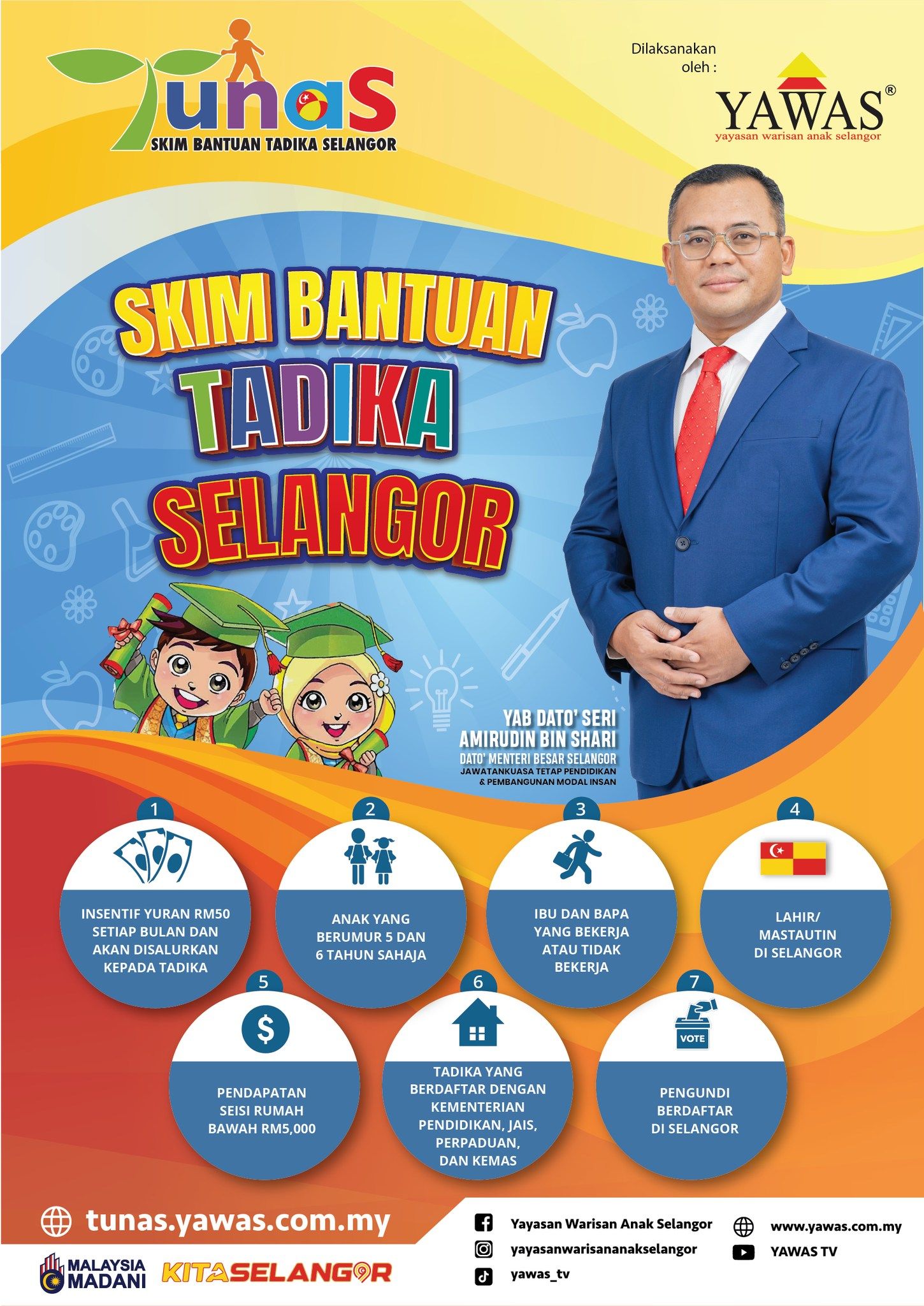 SHAH ALAM, 9 APRIL: Permohonan Skim Bantuan Tadika Selangor (TUNAS) masih dibuka dan memberi peluang kepada ibu bapa dan penjaga yang layak untuk memohon bantuan pendidikan awal anak-anak mereka.