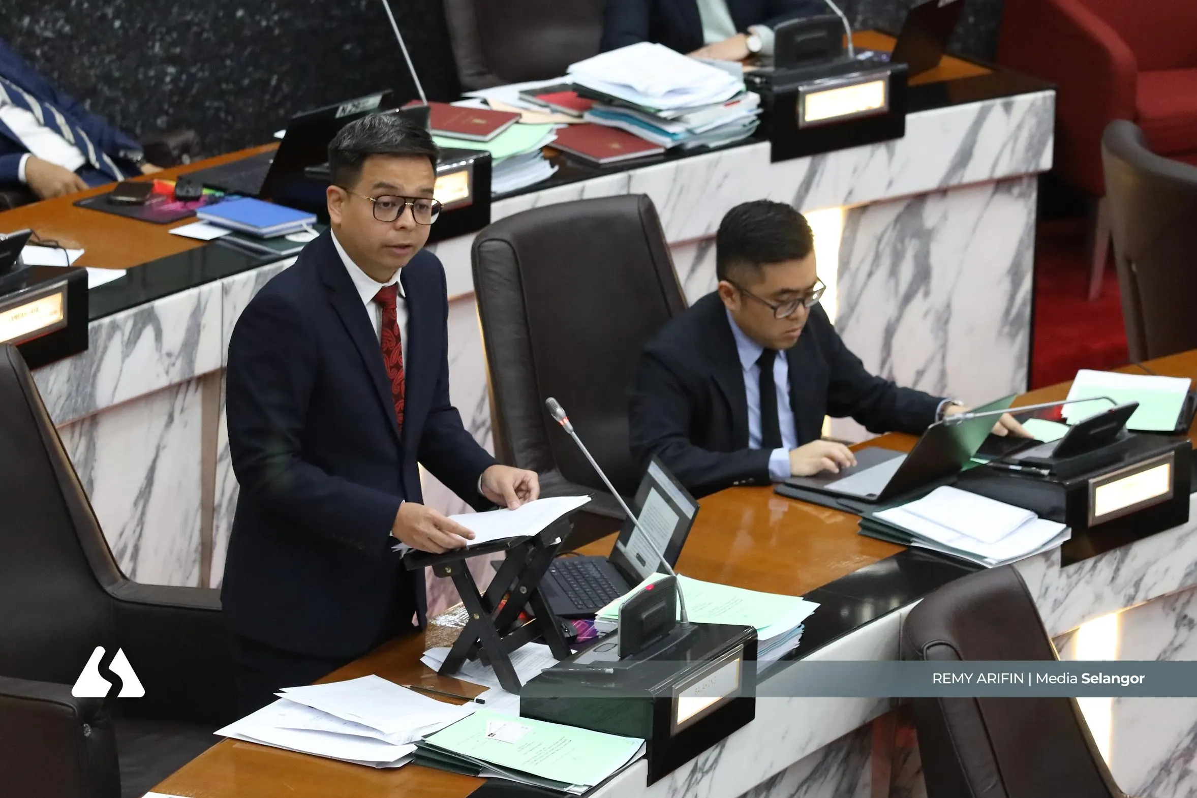 Ahli Dewan Negeri (ADN) Balakong Wayne Ong Chun Wei berucap ketika Mesyuarat pertama Persidangan Penggal Keempat Dewan Negeri Selangor Yang kelima Belas di Shah Alam pada 23 April 2026. Foto REMY ARIFIN/MEDIA SELANGOR
