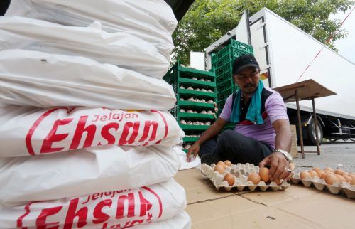 Petugas menyusun telur pada program Jelajah Ehsan Rakyat DUN Morib di Taman Sri Desa, Kuala Langat pada 21 Januari 2023.