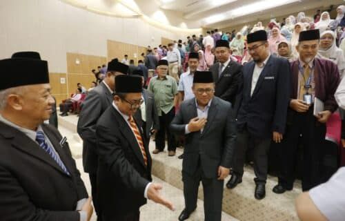 Dato' Menteri Besar Dato' Seri Amirudin Shari beramah mesra bersama peserta Seminar Wasatiyyah dan Membendung Ekstremisme di Dewan Dahlia Masjid Negeri, Shah Alam pada 30 September 2024.