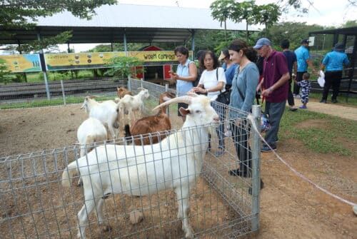 Peserta Regatta Antarabangsa Raja Muda Selangor memberi kambing makan ketika menyertai suai kenal (FAM Trip) mempromosikan produk agro pelancongan Selangor di Farm Fresh Serdang, Subang Jaya pada 14 November 2024.