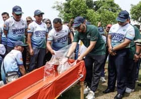 Dato' Menteri Besar Dato' Seri Amirudin Shari (tiga, kanan) bersama Menteri Besar Johor Datuk Onn Hafiz Ghazi (empat, kiri), Menteri Besar Negeri Sembilan Dato' Seri Aminuddin Harun (dua, kanan) dan Ketua Menteri Melaka Datuk Seri Ab Rauf Yusoh (dua, kiri) ketika forum ketua menteri dan gabenor ke-21 sempena persidangan mesyuarat segi tiga Indonesia, Malaysia dan Thailand (IMT-GT) di Pusat Konvensyen Desaru Coast, Kota Tinggi, Johor pada 11 September 2024.