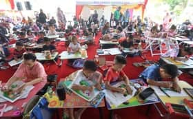 Kanak-kanak mengambil bahagian pertandingan mewarna dalam majlis perasmian Karnival Jelajah 3S Santai, Sihat, Sejahtera di Pengkalan Sabak, Sabak Bernam pada 27 Julai 2024.