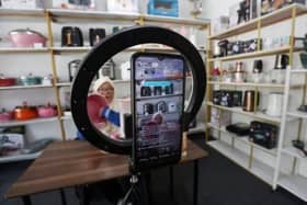 Pengarah Urusan BNG Nooraihan Che Li yang juga orang kurang upaya (OKU) membuat jualan secara dalam talian di pejabat BNG Homeware Hub, Semenyih, Kajang pada 1 Ogos 2024.