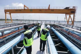 Kakitangan Lembaga Urus Air Selangor (LUAS) memantau keadaan stesen pam SJAM di Kolam Horas, Kuala Selangor pada 13 Mei 2025.