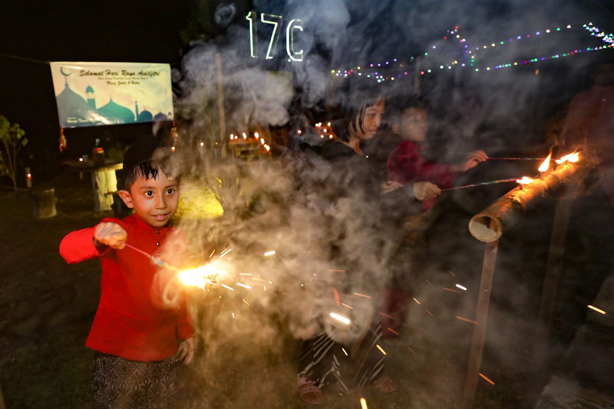 Kanak-kanak seronok bermain bunga api ketika tinjauan SelangorKini di program Deco Raya di Taman Mawar 2, Sepang pada 18 Mei 2022.