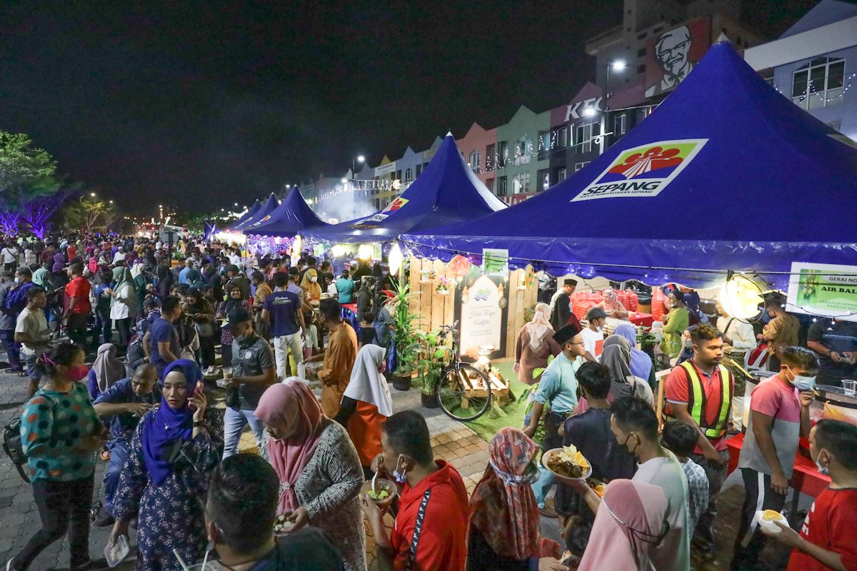 Orang ramai menghadiri majlis Rumah Terbuka Aidilfitri Negeri Selangor di BBST Walk Bandar Baru Salak Tinggi, Sepang pada 25 Mei 2022.