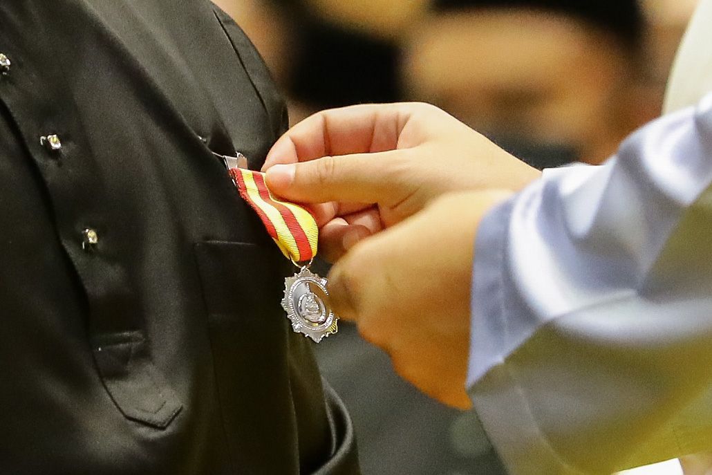 Istiadat Pengurniaan Pingat-Pingat Negeri Selangor Darul Ehsan Bagi Penerima-Penerima Daerah Petaling Dan Klang sempena sambutan Ulang Tahun Keputeraan Duli Yang Maha Mulia (DYMM) Sultan Selangor Sultan Sharafuddin Idris Shah Alhaj ke-76 di Dewan Jubli Perak Sultan Abdul Aziz Shah, Shah Alam pada 24 Januari 2022.