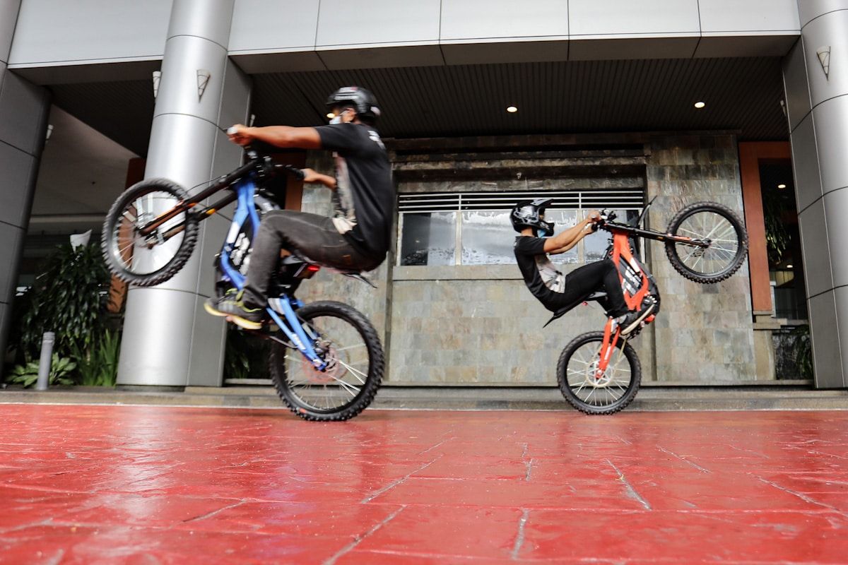Aksi penunggang basikal elektrik ketika majlis simbolik penyerahan sut perlindungan diri kepada Jabatan Penjara dan basikal elektrik serta luncur jet kepada Polis Diraja Malaysia di Bangunan Sultan Salahuddin Abdul Aziz Shah, Shah Alam pada 28 Oktober 2020.