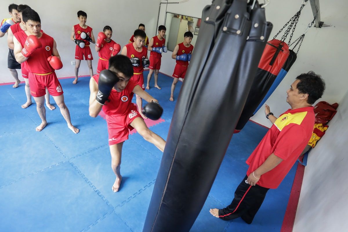 Atlet Wushu Sanda Selangor melakukan sesi latihan bagi persiapan SUKMA di Pusat Latihan Kelab Wushu KK Chia, Selayang pada 5 Julai 2020.