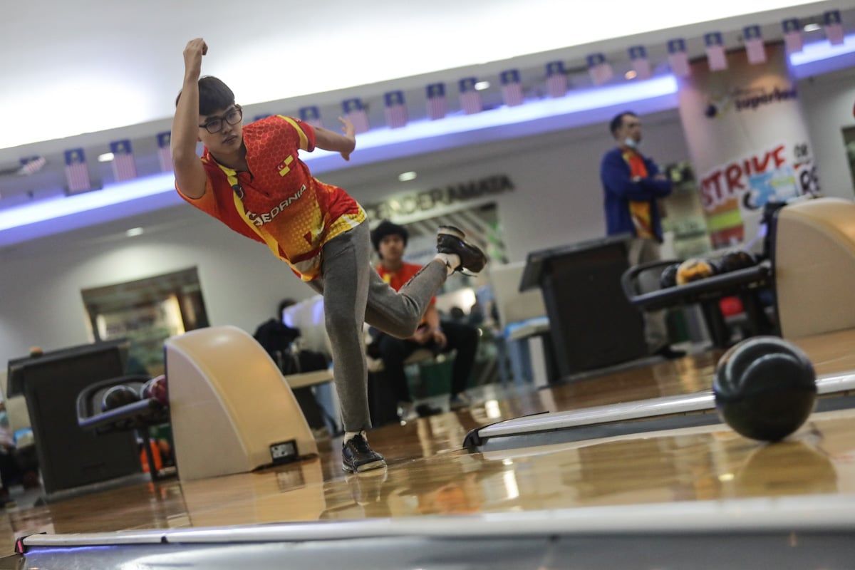 Atlet boling tenpin Adri Wafiq Hussin membuat latihan lontaran di Ampang Superbolw, Summit USJ, Subang Jaya pada 7 Julai 2020.