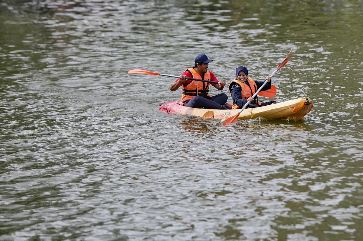 Orang awam melakukan aktiviti berkayak ketika tinjauan di sekitar Taman Tasik Shah Alam pada 9 Ogos 2020.
