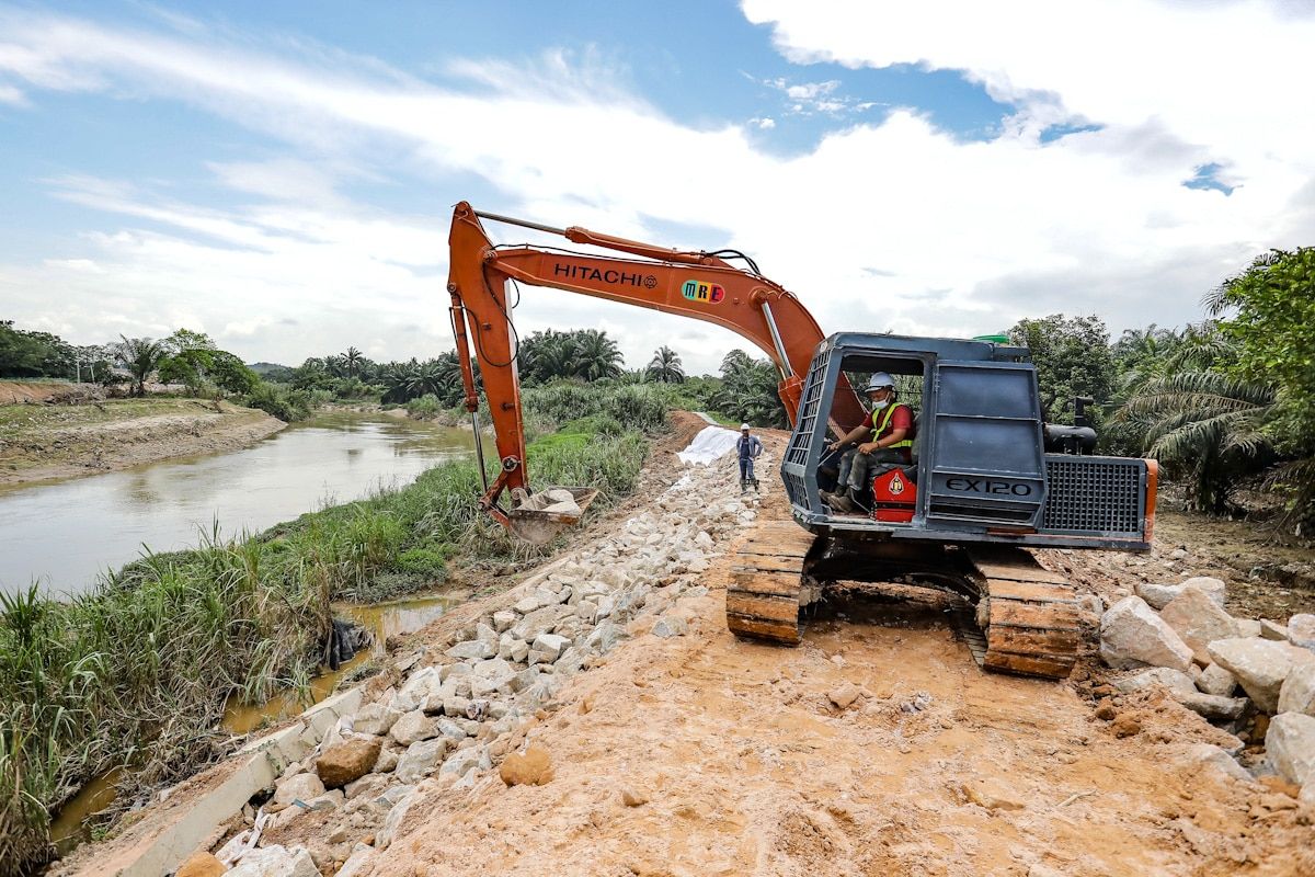Kerja menaik taraf sungai di Kampung Revolusi Hijau, Dengkil pada 18 Ogos 2020.